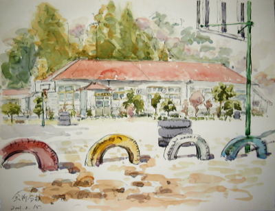 詩文は今春閉校になる木造校舎の入口にあります。この日はあいにく本校・老川小学校で卒業式練習のため留守でしたが、校舎中に11名の笑顔の写真がありました。(2001.3 大多喜町会所)