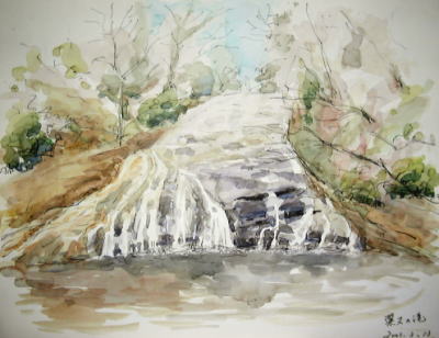 老川十字路で養老温泉郷とは反対の、養老川に沿って上ると養老の滝こと粟又の滝に出会います。(2001.3 大多喜町粟又)